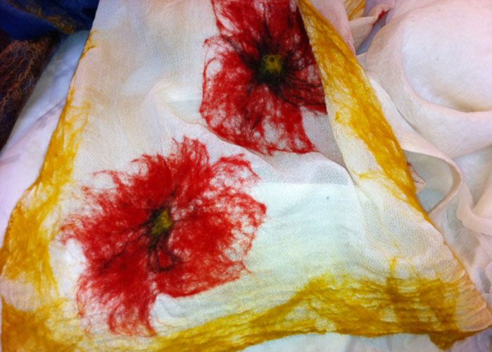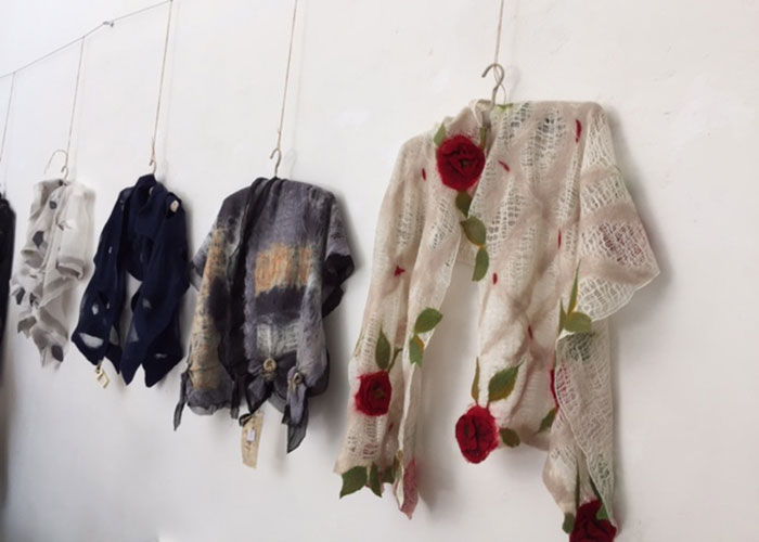 Altra tecnica è il nunofeltro, si tratta di assemblare la lana con i tessuti naturali creando sciarpe e veri e propri tessuti di abbigliamento.