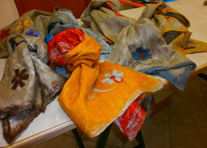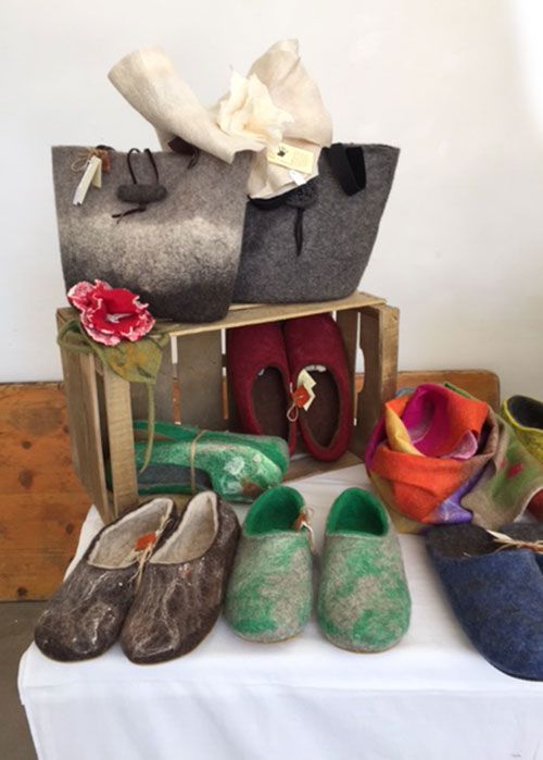 In particolar modo vengono realizzate borse, scarpe, pantofole e babbucce, sempre partendo da dei batuffoli di lana colorata, acqua calda e sapone, rigorosamente di Marsiglia.